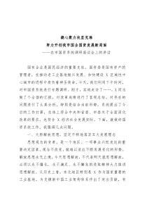 本功能”。这“三个有利于”既是国有企业改革的方向,也是衡量国企改革成效的标准。市国资系统和各位企业家要深入学习领会,在践行习近平总书记关于国企国资改革一系列重要讲话精神中,推动X国企国资工作再上新台阶。二、全面深化改革,不断激发市属国有企业的发展活力和内生动力我们要认真