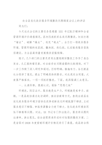 在全县优化政务服务环境整改问题调度会议上的讲话同志们:今天这次会议的主要任务是根据XXX书记批示精神和全省营商环境评价通报情况,坚决迅速抓好各类问题整改,切实打通“堵点”、破解“痛点”、攻克“难点”,全力打一场政务服务环境、