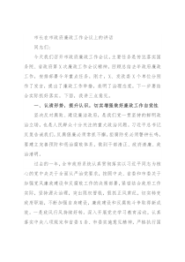 市长在市政府廉政工作会议上的讲话同志们:今天我们召开市政府廉政工作会议,主要任务是传达落实国务院、省政府第X次廉政工作会议精神,回顾总结去年政府廉政工作,安排部署今年重点任务。刚才,X、发改委X个单位分别作了发言