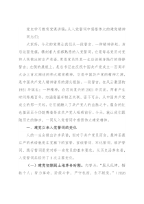 这就是中国共产党战胜一切困难的根本保证。三、永远把伟大建党精神继承下去、发扬光大历史川流不息,精神代代相传。习近平总书记指出:“理想信念之火一经点燃,就永远不会熄灭。”伟大建克精神跨越时空、历久弥新,激励看我们踏平坎坷成大道、斗罢