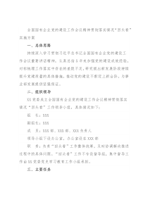 部署安排,结合实际制定本企业实施方案。安排一次党委理论学习中心组学习,重温习近平总书记关于国有企业改革发展和党的建设重要论述,研究讨论本单位落实举措。开展对标自查(X月上旬-X月下旬)。XX所辖各企业党组织要系统总结加强党的建设优良传统和经验做