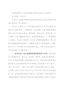 县医院党委在X县庆祝建党100周年座谈会上的发言各位领导、同志们:大家好!非常荣幸能够代表县医院党委在全县庆祝建党100周年座谈会上作汇报发言。近年来,尤其是×年×月县医院党委成立之后,我们坚持“党建