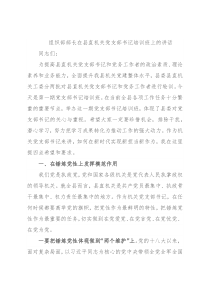 组织部部长在县直机关党支部书记培训班上的讲话同志们:为提高县直机关党支部书记和党务工作者的政治素质、理论素养和业务能力,全面提升我县机关党建整体水平,县委县直机关工委分两批对县直机关党支部书记和党务工作者进行轮训。今天是第一期党支部书记培训班。在