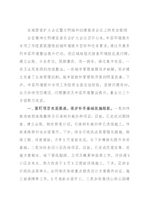 速,逐步补齐基础设施短板。一是加快推进破损道路整修及行道树补栽补种项目。目前,已完成问题排查、建立台账、制定修复计划,行道树补栽补种已进场施工,市政道路修补也全面展开。下步,综合行政执法局要强化措施、倒排工期、适度超前,力争X月