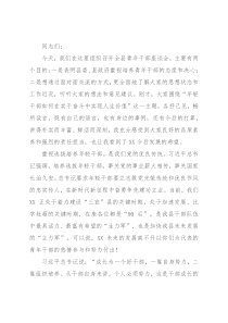队伍中最具活力、最富有希望的“生力军”,也是加快我县未来发展的“主力军”。可以说,XX未来的发展离不开以你们为代表的青年干部的热情参与和努力付出!习近平总书记说:“成长为一个好干部,一靠自身努力,二靠组织培养。从干部自身来讲,
