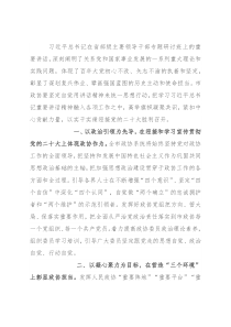 ,为营造“三个环境”贡献政协智慧和力量。三、以创新履职为重心,在围绕中心服务大局上展现政协贡献。牢牢把握新时代新征程党的中心任务,牢牢把握党中央提出的新思想新战略新举措,全面对标对表习近平总书记重要讲话精神,坚持建言资政和凝聚共识双向发力。深入落实“三