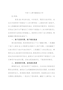 干部个人事项漏报检讨书XX党委:我是XXX单位的XXX,中共党员,现担任XXX职务。在这次年度领导干部报告个人有关事项统一上报相关部门查验中,本人因漏报相关事项被组织查证。经领导批评教育后,我深刻认识到自己的行为严重违反了《领导干部报告个人有关事项规定》,在深刻进行自我检讨的基础上,我深刻