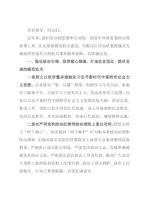 魂,打造信念坚定、绝对忠诚的模范机关一是持之以恒学懂弄通做实习近平新时代中国特色社会主义思想。认真落实“第一议题”制度,创新学习方式方法,拓展学习载体平台,力戒学习上的形式主义,营造浓厚学习氛围,自觉以习近平新时代中国特色社会主义思想武装头