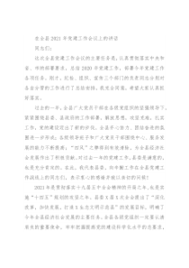 在全县2021年党建工作会议上的讲话同志们:这次全县党建工作会议的主要任务是,认真贯彻落实中央和省、市的部署要求,总结2020年党建工作,部署今年党建工作各项任务。刚才,纪检、组织、宣传三个部门的负责同志分别对各自分管的工作进行
