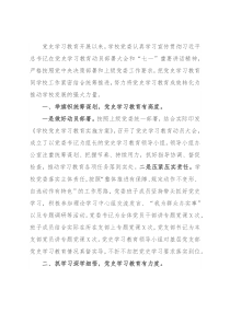 学细悟,党史学习教育有力度。一是领导干部带头学。充分发挥“头雁”示范作用,党委班子成员带头学,党委理论学习中心组围绕习近平总书记在党史学习教育动员大会上的重要讲话精神以及X个专题学习,已开展X次不少于2天的党委理