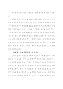 办公室主任学习党史研讨发言:悟思想真实践提升工作能力按照理论学习中心组集体研讨安排,近期,我深入学习了习近平总书记在党史学习教育动员大会上的重要讲话和总书记关于开展好党史学习教育的重要指示精神等内容,在课余的时间利用学习强国app平台听了《中国共产党简史》、