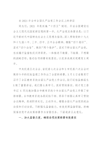在2021年全市全面从严治党工作会议上的讲话同志们,2021年是实施“十四五”规划、开启全面建设社会主义现代化国家新征程的第一年,从严治党总体要求是:以习近平新时代中国特色社会主义思想为指导,深入贯彻党的十九大和