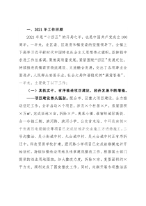 一、2021年工作回顾2021年是“十四五”的开局之年,也是中国共产党成立100周年。一年来,在区委、区政府和镇党委的坚强领导下,全镇上下高举习近平新时代中国特色社会主义思想伟大旗帜,坚持稳中求进工作总基调,聚焦高质量发展,紧紧围绕“四区”发展定位,持续推进我镇商贸物流建设、文旅融合