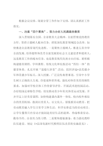 根据会议安排,现就分管工作作如下安排,请认真抓好工作落实。一、注重“四个聚焦”,努力办好人民满意的教育深入贯彻落实全国、全省教育大会精神,全面贯彻党的教育方针,坚持立德树人根本任务,持续深化教育领域综合改革,加快推进全县教育现代化进程。一是聚焦立德树人,推进五育并举全面