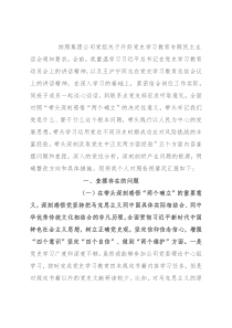按照集团公司党组关于开好党史学习教育专题民主生活会通知要求,会前,我重温学习习近平总书记在党史学习教育动员会上的讲话精神,以及王沪宁同志在党史学习教育总结会议上的讲话精神,在深入学习的基础上,紧密结合岗位工作实际,同班子成员一起谈心谈话,到联