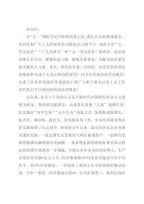 同志们:在“五一”国际劳动节即将到来之际,我们在这里隆重集会,共同庆祝广大工人阶级和劳动群众自己的节日,表彰全市“五一劳动奖状”“工人先锋号”和“五一劳动奖章”获得者,动员和鼓舞全市人民,凝聚奋进力量,展现全新姿态,为推动高质量发展贡献更大力量。首先,我代表市委、市政府,向受到表彰