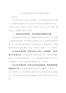 在全县直机关党组织书记党课上的讲话同志们:今年是中国共产党成立100周年,从中央到地方都先后开展了一系列的庆祝活动。今天,我们召开县直机关党组织书记会议,大家对上半年工作进行了汇报,并针对下步工作,谈了打算。借此机