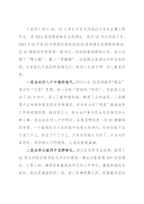 等产业布局和集体经济发展情况,亲身参与村“两委”换届选举工作和疫情防控、森林防灭火、安全生产等与民生息息相关的大事小事。我也在走村入户中明白,在基层哪怕是一项XX健康码的申领、一个森林防灭火点的值守也是大有学问,对老百姓不在于说了什么,而在于干了什么,只有老百姓认可你了,