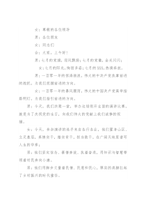 女:尊敬的各位领导男:各位朋友女:同志们合:大家,上午好!男:七月的党旗,迎风飘扬;七月的党徽,金光闪闪;女:七月的阳光,绚丽多姿;七月的XXX,热情奔放。男:一百零一年的惊涛骇浪,伟大的中共产党执掌前进的舵把,为我们把握前进的方向。女:一百零一年的暴风骤雨,伟大的中国共产