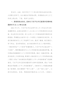 同志们,会前,我们印发了7个单位的书面交流发言材料,大家要认真学习,充分借鉴应用经验成果,共通推动全市人才工作再上新台阶。下面,我讲几点意见:一、要提高政治站位,坚持以习近平总书记重要讲话精神统揽新时代XX人才事业发展2021年9月,习近平总书记出席中央人才工作会议并且发