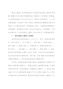 强残疾康复服务”决策部署,市残联结合实际,通过召开座谈会、现场调研、个别走访等形式,对我市残疾人康复工作状况进行了专题调查研究。一、我市残疾人康复工作情况我市现有各类持证残疾人1.37万人,其中:按残疾类别划分,视力2214人、听力1837人、言语403人、肢体6105人、