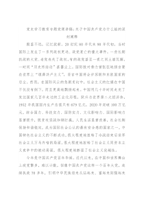 党史学习教育专题党课讲稿:关于中国共产党为什么能的深刻阐释殷鉴不远,记忆犹新。20世纪80年代末90年代初,当时国际上发生了一系列政权更迭、政党衰亡的重大事件,一些长期执政的大党、老党丧失了政权,有的政党甚至一