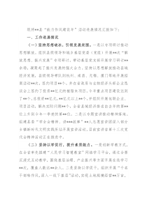 现将**县“能力作风建设年”活动进展情况汇报如下:一、工作进展情况(一)坚持思想破冰,引领发展突围。一是以专项研讨推动思想解放。组织县级领导和城乡基层党委(党组)开展**次“解放思想、振兴发展”专项研讨,带动基层党支部开展学习研讨**余场,凝聚起了振兴发展的强大合