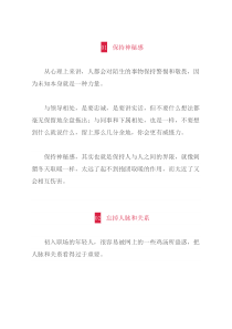 01保持神秘感从心理上来讲,人都会对陌生的事物保持警惕和敬畏,因为未知本身就是一种力量。与领导相处,是要忠诚,是要讲实话,但不要什么想法都毫无保留地全盘拖出;与同事和下属相处,也是一样,不要想到什么就说什么,留上那么几分余地,你会更有威慑力。保持神秘感,其实也就