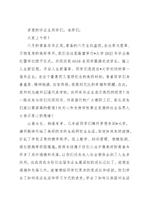 亲爱的毕业生同学们,老师们:大家上午好!六月的青春芳华正茂,青春的六月生机盎然。在这草木葱翠、万物竞秀的美好季节,我们在这里隆重举行*大学2022年毕业典礼暨学位授予仪式,共同庆祝6310名同学圆满完成学业,