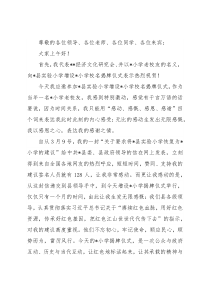 尊敬的各位领导、各位老师、各位同学、各位来宾:大家上午好!首先,我代表**经济文化研究会、并以*小学老校友的名义,向*县实验小学增设*小学校名揭牌仪式表示热烈祝贺!今天我应邀参加*县实验小学增设*小学校名揭牌仪式,作为当年一名*小学老校友,我感到特别