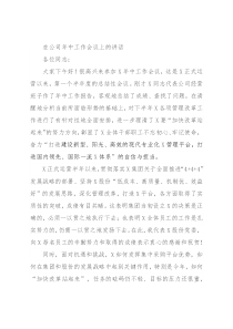 在公司年中工作会议上的讲话各位同志:大家下午好!很高兴来参加X年中工作会议,这是X正式运营以来,第一个半年度的总结性会议。刚才X同志代表公司经营班子作了年中工作报告,客观地总结了成绩、查找了问题,在清醒地分析当前所面临形势的基础上,对下半年X各项管理改革工作进