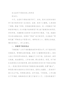 在全县村干部培训班上的讲话同志们:今天,全县村干部培训班开学了。首先,我对大家参加培训学习表示热烈欢迎!这次培训,县委、政府十分重视,认真安排了课程,配备了师资,目的就是要通过培训,进一步提高村干部的素质和能力,为乡村振兴培养新型干部。能不能做到来有所获,学有所得,关键要看大家的学习态