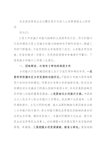 在区政协常委会会议暨区党外代表人士协商通报会上的讲话同志们:X是X市实施乡村振兴战略的主战场和先行区,而乡村振兴示范村建设正是X实施乡村振兴战略的先手棋和突破口,随着工作的不断推进,示范村的村庄布局得到了优