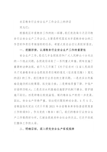 在区粮食行业安全生产工作会议上的讲话同志们:根据我区年度粮食工作的统一部署,我们发改局今天召开粮食行业安全生产工作会议,主要是研究落实本年度粮食安全的工作目标和责任考核指标的任务,希望大家在会后认真抓好落实。一、把握形势,认清粮食行业安全生产工作的重要性安全生产工作,