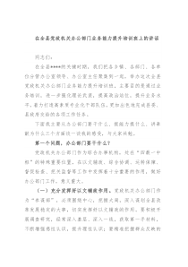 在全县党政机关办公部门业务能力提升培训班上的讲话同志们:在全县****的关键时期,我们把各乡镇、各部门、各单位分管办公室领导、办公室主任聚集到一起,举办这次全县党政机关办公部门业务能力提升培训班,主要