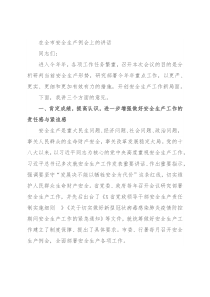 在全市安全生产例会上的讲话同志们:进入今年年,各项工作任务繁重,召开本次会议的目的是分析研判当前安全生产形势,研究部署今年年重点工作,以更严、更实、更细和更加有效有力的措施,开创安全生产工作新局面。下面,我讲三个方面的意见。一、肯定成绩,提高认识,进一步增强做好安全生产工作的