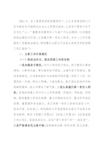 成了心往一处想劲往一处使,既分工明确,又密切配合,敢于担当务实和开拓创新的集体,给公司带来了新气象。二是认真履行第一责任人职责。坚持把党建工作与中心工作同部署、同落实、同检查、同考核,做到重要工作亲自部署、重大问题亲自过问、重点环节亲自协调、重要案件亲自督办
