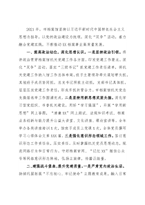 斗争精神、增强斗争本领。二是强化支部规范建设。加强日常教育管理,深入学贯条例,落实党员日常积分管理。开展“X·XX思廉日”“弘扬新时代XX治水精神”“决战‘过万亿’走在前、夺取‘双胜利’作表率”“算好廉政账”等主题党日活动,一二支部成功创建四星级党支部。做好离退