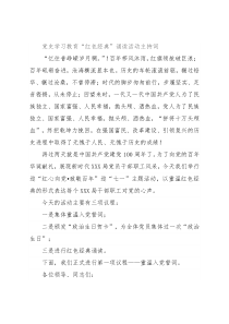 更接近中华民族的伟大复兴!有请XXX为大家朗诵《我们正在一步一步往上升》!……………………(朗读中)………………………同志们:“浩渺行无极,扬帆但信风。”一百年前的七月,一只红船在历史中破浪前行,从南湖起航到奋楫金沙江、从四渡赤水到饮马长江,将红旗插到了井冈峰顶、遵义城头、延安宝塔、西柏