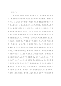 同志们:人民代表大会制度是中国特色社会主义制度的重要组成部分,是支撑国家治理体系和治理能力的根本政治制度。党的十九大以来,以习近平同志为核心的党中央高度重视坚持和完善人民代表大会制度,全面加强党对人大工作的领导,不断赋予人民代表大会制