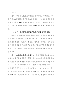 同志们:刚才,**分别汇报了上半年经济运行情况,**高新区、**经开区、**高新区分别汇报了**发展情况,有关市直部门作了书面发言。等下,**书记将作重要讲话,请大家认真领会,抓好落实。下面,我就全市经济运行情况和**高质量发展,先讲几点意见。一、关于上半年经济运行情况和下半