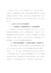 。2022年上半年完成X项人力资源制度和X项流程编制,为公司人员管理提供制度保障。(二)推进全新管理模式,开展岗位匹配和人员招聘工作1.按照“建管一体化”的总体思路,采取全新管理模式,2022年上半年,通