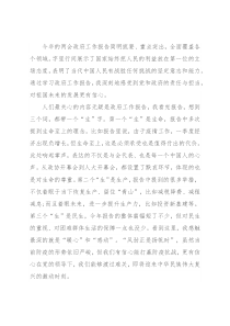今年的两会政府工作报告简明扼要、重点突出,全面覆盖各个领域。字里行间展示了国家始终把人民的利益放在第一位的立场态度,表明了当代中国人民有战胜任何挑战的坚定意志和能力。通过学习政府工作报告,我深刻地感受到党和政府的责任与担当,对祖国未来的发展更有信心。人们