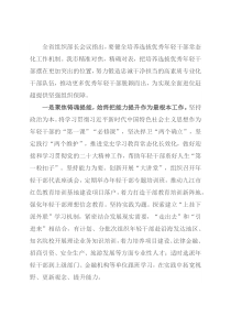 全省组织部长会议指出,要健全培养选拔优秀年轻干部常态化工作机制。我市精准对焦,精确对表,把培养选拔优秀年轻干部摆在更加突出的位置,努力锻造忠诚干净担当的高素质专业化干部队伍,推动更多优秀年轻干部脱颖而出,为实现全面进位赶超提供坚强组织保障。一