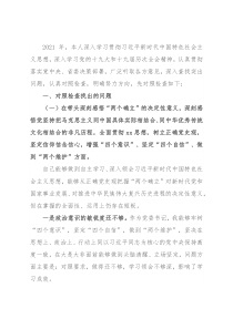 2021年,本人深入学习贯彻习近平新时代中国特色社会主义思想,深入学习党的十九大和十九届历次全会精神,认真贯彻落实党中央、省委决策部署,广泛听取各方意见,深入查找突出问题,认真对照检查,明确努力方向,先对照检查如下:一、对照检查找出的问题(一)在带头深刻感悟“两个确立”的决定性意义,深