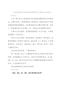 党委书记XX同志述职;XXXXX(XXX、XXX、XX、XXX、XXX同志依次点评)XXXXX上年度述职评议会上,县委对X镇党委抓基层党建工作提出了4个问题,从述职来看,已完成整改。XX镇党委始终把党建工作摆在首位,对抓党建、抓主