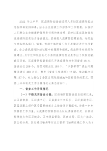 督带帮”提出问题整改建议400余条,制发《督查工作通报》12期,推动解决问题137个,有力推动了全区各项防疫措施和目标任务的落实。现将上半年有关工作开展情况认真总结如下。一、督查工作开展情况(一)不断充实督查力量。区疫情防控督查组自组建以来,由