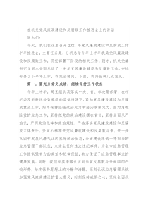 在机关党风廉政建设和反腐败工作推进会上的讲话同志们:今天,我们在这里召开2021年党风廉政建设和反腐败工作半年推进会,主要任务是,分析总结今年上半年我局党风廉政建设和反腐败工作,研究部署下阶段的相关工作。刚才,