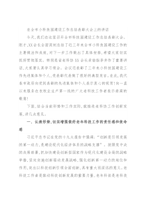 在全市小科技园建设工作总结表彰大会上的讲话今天,我们在这里召开全市科技园建设工作总结表彰大会。刚才,XX会长全面深刻总结了近三年来全市小科技园建设工作的主要做法和成效,对下一步工作做出了具体安排,希望大家切实抓好贯彻落实。特别是省老科协XX会长亲临指导并作了重要讲话,大家要认真学习领会。会议还表