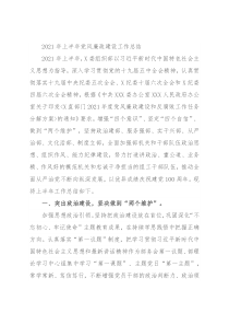 2021年上半年党风廉政建设工作总结2021年上半年,X委组织部以习近平新时代中国特色社会主义思想为指导,深入学习贯彻党的十九届五中全会精神,认真贯彻落实十九届中央纪委五次全会、X纪委十届六次全会和X纪委四届六次全会精神,根据《中共XXX委办公室